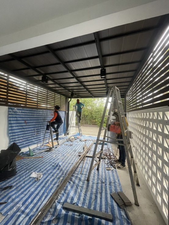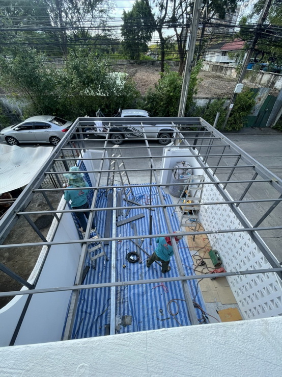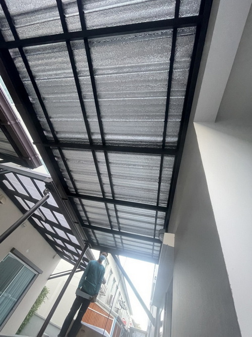 โครงหลังคา ไวนิล รางน้ำสแตนเลส พร้อมระแนงด้านข้าง พหลโยธิน 47 ทาวน์โฮม