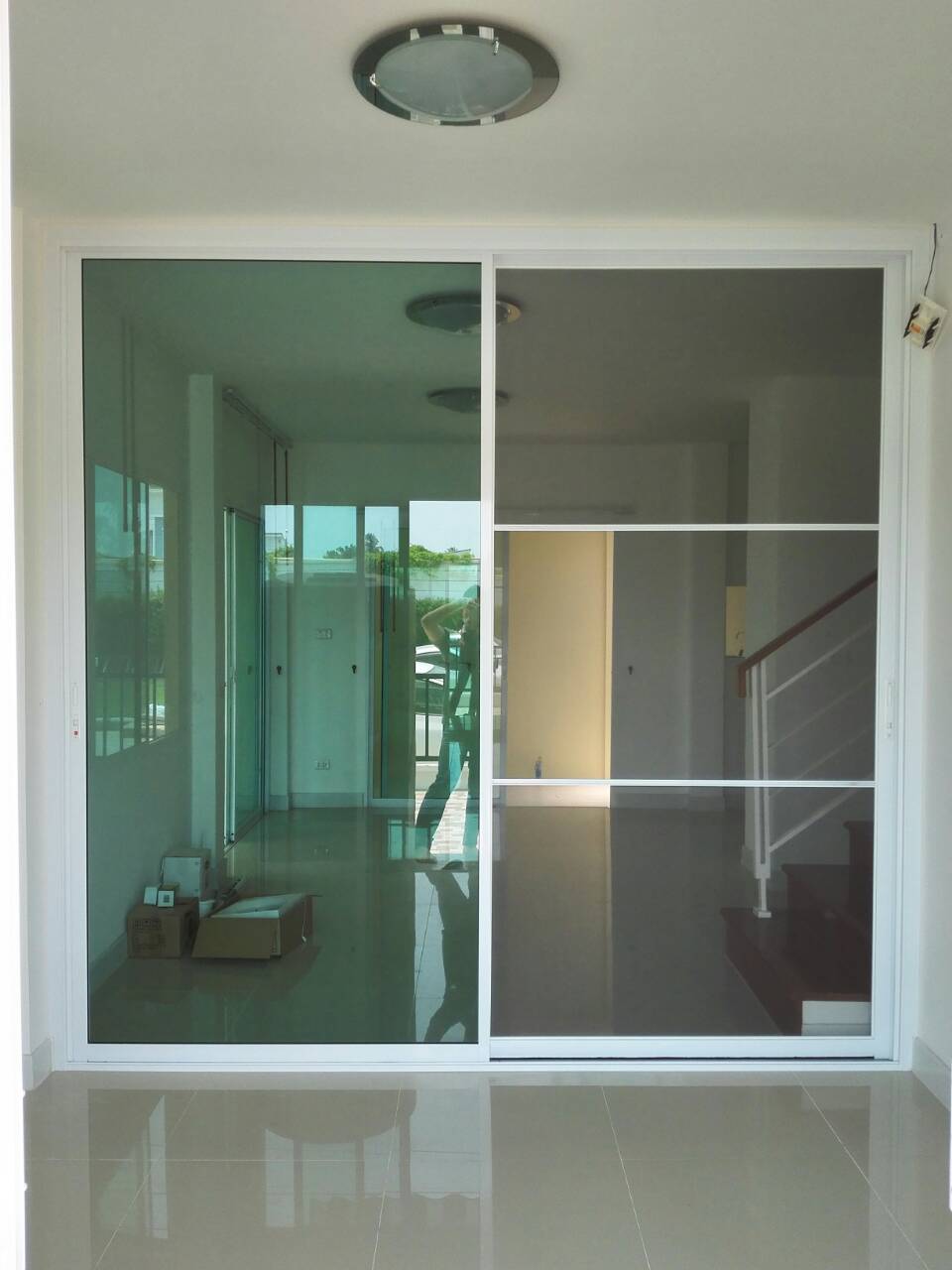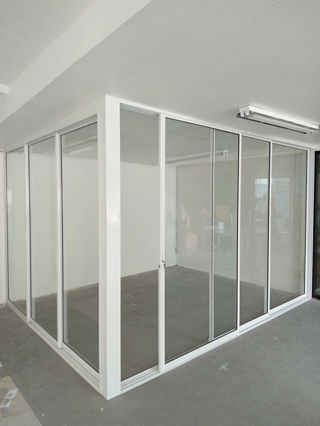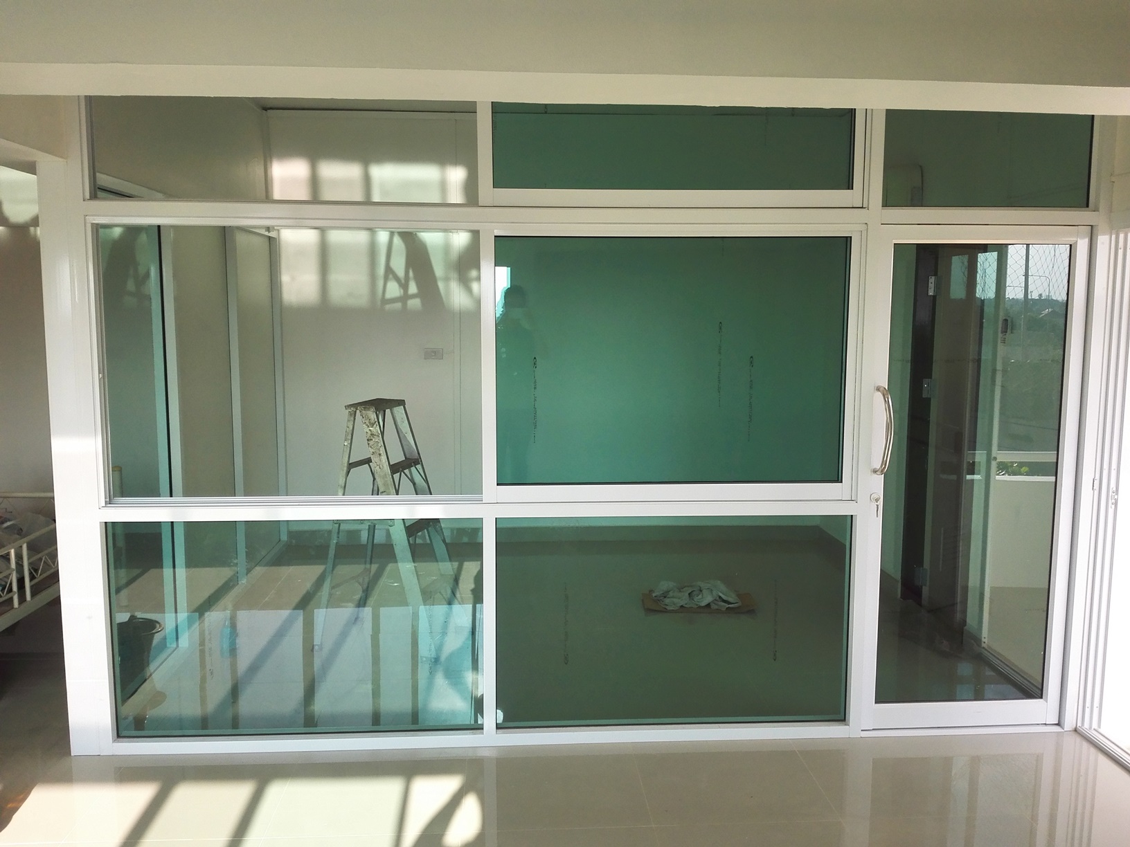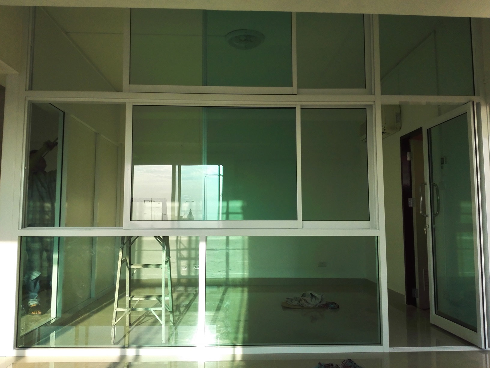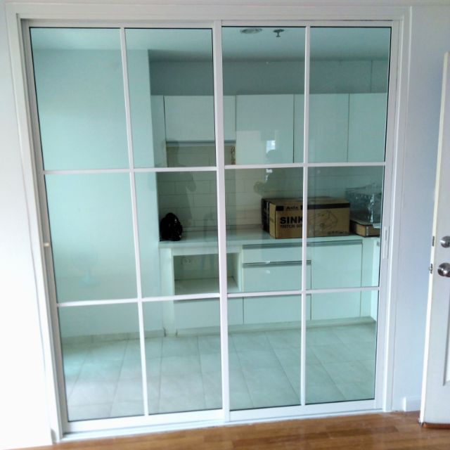 คือ ประตูกระจกอลูมิเนียม หน้าต่างกระจกอลูมิเนียม กั้นห้องด้วยกระจก |